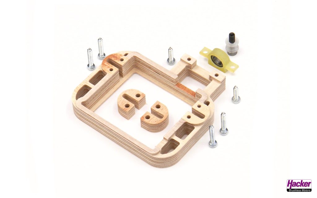 1 Servorahmen mit Aufnahme für Kugellager rechts inkl. Befestigungsschrauben.